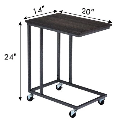 Are you finding a side table for your bed or sofa? Our functional side table is a great choice for you. Made of strong metal frame, the whole side table is stable and durable to use. With four rubber castes, it is not easy to slide if you stop moving the table. And two of the casters have breaks to control easily by yourself. With U-shaped design, the side table can slide into bed or sofa for convenient using. In your living space, the side table is ideal to be a snack table, phone table, lamp table, or decorative display table. Designed in concise and rustic style, the side table fits for any kind of decoration and will bring a breath of fresh air into your home with its extraordinary furniture. . Specification: Color: Brown. Materials: Wood and Iron. Product Size: 20ββ(L) X 14ββ(W) X 24ββ(H) . Product Weight: 10.5 lbs. Weight Capacity of Tabletop: 55 lbs. Package include: . 1 X side table. 1 X instructions.