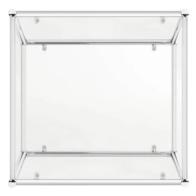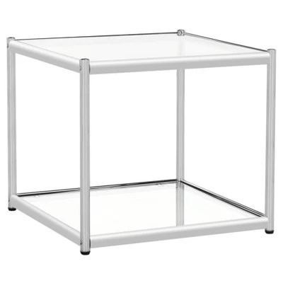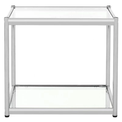 Designed for the educated palate, this contemporary glass end table has all the right angles. The modern chrome finish of the Lilias Glass End Table is paired with smooth plate glass, offering up ample space to display treasures or the requisite glass of wine. Its clean and open structure makes it an easy favorite of architects. The Llias Glass End Table is made with glass and iron tube, required assembly, and holds up to 15 pounds.