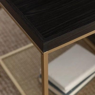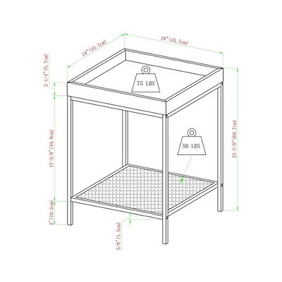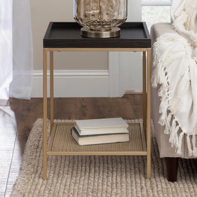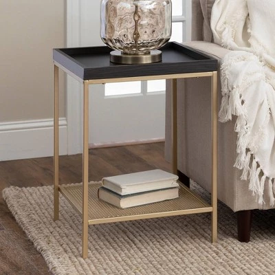 Spice up your life with the Rosalyn Industrial Glam Square Tray Side Table from Saracina Home. The tray-style table top prevents little things from toppling over the edge. This end table works incredibly well as in your vanity corner to keep cosmetics together. This two-tone accent table features a lower metal mesh shelf with a painted gold finish so you can store and display the appropriate decor to achieve your luxury life.