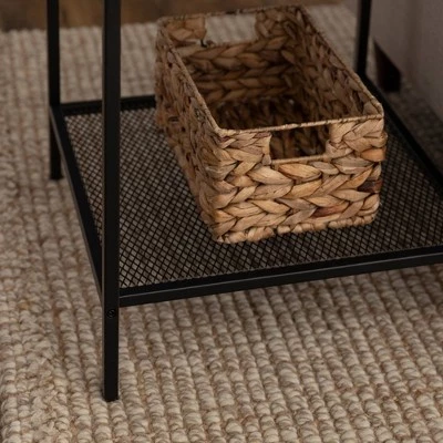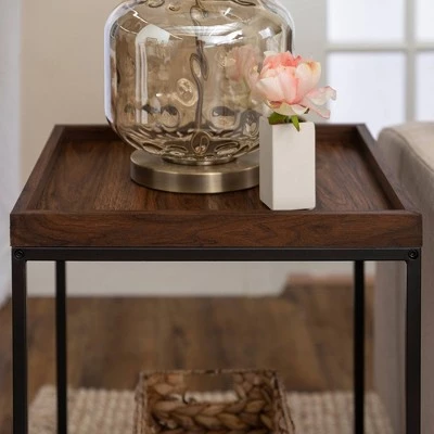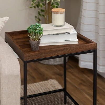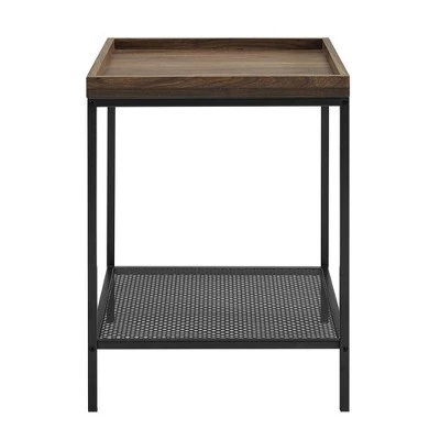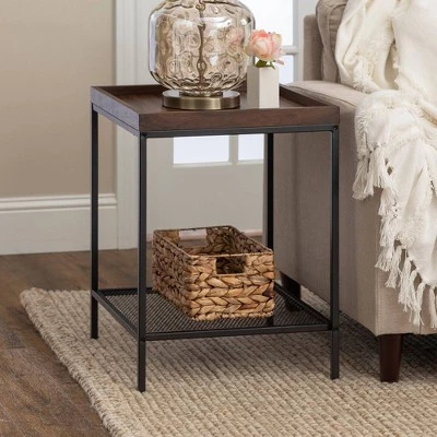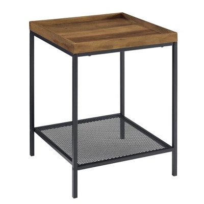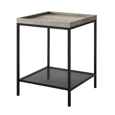 Spice up your life with the Rosalyn Industrial Glam Square Tray Side Table from Saracina Home. The tray-style table top prevents little things from toppling over the edge. This end table works incredibly well as in your vanity corner to keep cosmetics together. This two-tone accent table features a lower metal mesh shelf with a painted gold finish so you can store and display the appropriate decor to achieve your luxury life.