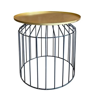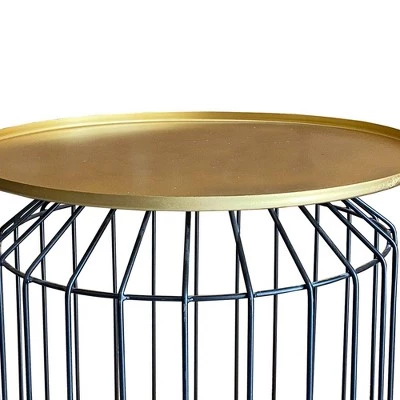 Though industrial in design, this Accent Table is sure to create a concoction of charm and splendor to the aesthetics of your home interior. Incorporated with a tray top design, this elegant piece of furniture is supported on tubular wire frame. Constructed sturdily from Iron frame, the striking black color finish on the frame accompanied with powder coated gold color embellishment grant a sophisticated and opulent touch to it. Place this decorative Round Accent Table besides your sofa set to create a sophisticated storage space for snacks and remote within your arms reach. This piece of furniture can be placed in your living room as an abode to exotic decor items, showpieces, vases and other related items. The mere presence of this Accent Table will enhance the overall aesthetics of your place.