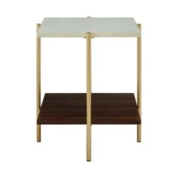 Never suffer a dull corner again! The 16β Side Table by Saracina Home is here to fill all your budding, decorating needs. Picture yourself a trendy home designer; show those fixer-uppers a thing or two with just how chic you can be. Use this circular, geometric beauty as a side table, end table, accent piece, or even a slim cocktail counter. Its warp-resistant finish and gold-painted frame will last the test of time. And did you see its white faux marble tabletop? Talk about class. So, treat yourself and place its sleek silhouette anywhere you like. Pop it by the couch, sneak it by your entertainment console, or slip it in your bedroom. While some assembly is required, breaking your bank isnβt.