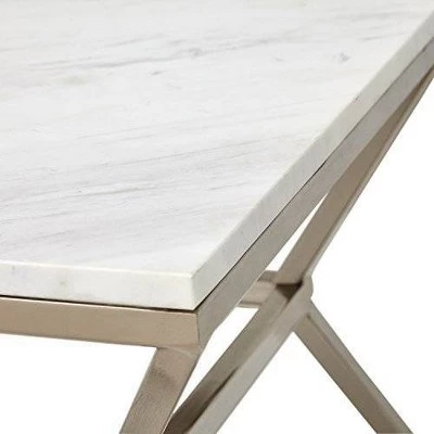 This stunning marble top table adds a hint of extravagance to your space. Inspired by vintage Art Deco design, this accent table combines a marble print square top and polished silver or matte black base for a sleek modern look. The hourglass shaped base is dramatic and geometric, while the square marble printed table top is perfect for showcasing floral arrangements, artwork, or magazines. High end finishes of white marble and silver or matte black make it easy to add sophistication to the living room, entryway, or bedside as a modern nightstand.