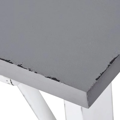 Display family photos and your favorite small home accents on this sleek side table from the Signature collection by StyleCraft Home Collection. Metal and wood are distressed with a white and gray finish to create a look that works with many dΓ©cor styles. Simply update your home by placing this side table in your living room, hallway, or bedroom.