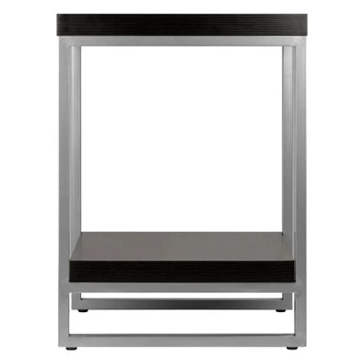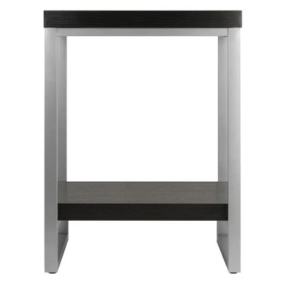 If clean lines and contemporary style match your design aesthetic, choose this Jared End Table from Winsom. This modern side table features a rectangle tabletop and matching shelf, and the steel frame provides an industrial, mixed-media feel. The tabletop and shelf have a dark brown finish that contrasts beautifully with the metal frame, and the neutral style makes this piece perfect for a variety of spaces. Place it in your modern living room or kitchen for a look that displays your unique taste.