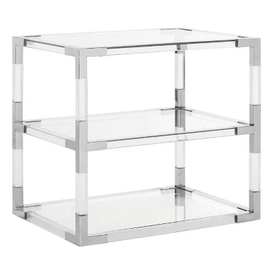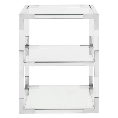 Three times the charm. The Louisa End Table is a petit princess. Its acrylic and glass shelves are anchored by sophisticated bronze brass details that create instant rapport in any dΓ©cor. Ideal for ensuring all of lifeβs indulgences are at hand. The cool mod design and bright elegant details of this end table makes it a perfect addition for contemporary, modern, or transitional rooms. It is available in multiple colors to best suit your personal tastes and decor.