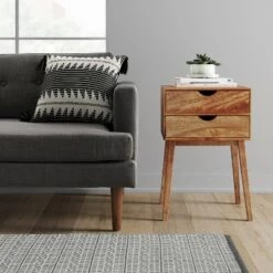 For warm and modern style, add the Mid-Century Two-Drawer Table from Project 62β’ to your space. With a warm honey finish, this accent table is a great addition to any space, large or small. Place next to an arm chair or sofa to hold beverages and store coasters and remotes to keep your space clutter-free.1962 was a big year. Modernist design hit its peak and moved into homes across the country. And in Minnesota, Target was born – with the revolutionary idea to celebrate design for all. Project 62 embodies this legacy with a collection of modern pieces made for everyday living.