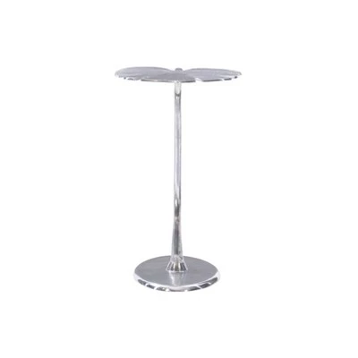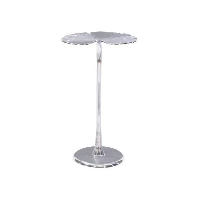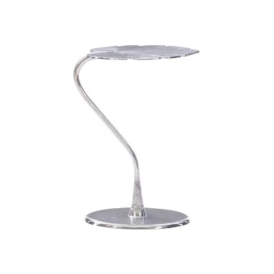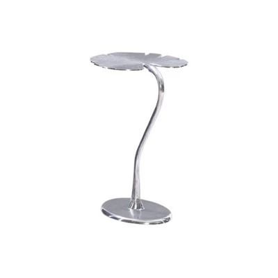 Make a statement with this beautiful contemporary accent table. Inspired by the lush foliage of a tropical garden, this sculpture like piece features dramatic curves and an intricately detailed leaf that will add an elegant touch to any room. The modern design works perfectly as a living room end table or a stand for a candle and a glass of wine while relaxing in the bath. You can even add this aluminum table to your outdoor furniture set. It is an exquisite combination of form and function for your home.