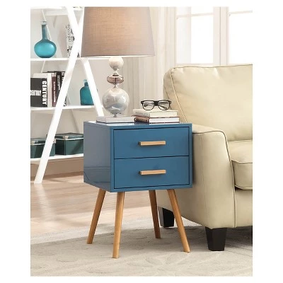 The Oslo Two Drawer End Table by Breighton Home is the must have furniture piece for your home decor. Inspired by mid century styling, it will update your living room, den or home study. Its chic cube like frame is crafted from MDF and finished with a non lead base paint. Perfect for easy maintenance. Its signature tapered legs are fashioned from rubberwood and are sturdy enough to endure the test of time. Its drawer handles are made from bamboo, adding to its stylish look. The ample table top allows for a lamp, a book and your favorite coffee. With durable metal glides, the spacious drawers pull out smoothly to have all entertainment essentials out of sight but within reach. Place this square table in your ensemble minutes after delivery with its easy assembly requiring only 6 easy steps. This multifunctional table is available in multiple finishes. Find more furniture pieces from the Oslo Collection by Breighton Home. Each sold separately.