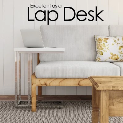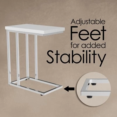 The Sofa Side Table by Hastings Home is a beautiful and practical addition to your home decor. This C-style furniture piece can be used vertically as an end table, and horizontally as a lap desk. Blending the minimalist aesthetic of mid-century modern style and functionality, this sofa table features a chrome metal base and a glossy white colored wood-look top. The C shaped table allows you to slide it under a sofa or chair to make your magazines, coffee cup or snack plate easier to reach. The side table is also a great spot for a plant or decor piece, or as a convenient place to work on your laptop. It’s the perfect multi-purpose piece for any home! . This product contains chemicals known to the state of California to cause cancer, birth defects, or other reproductive harm. https://www.p65warnings.ca.gov