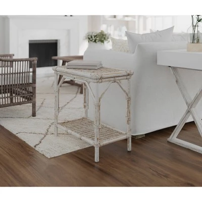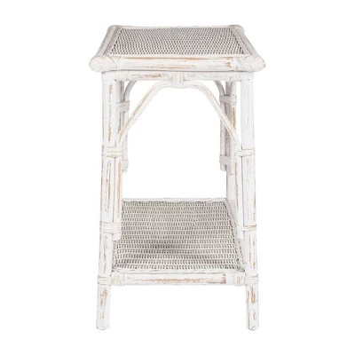 With woven pattern on a lasting rattan pole frame, the handcrafted East at Main Sumba End Table was designed to bring the charm of another era right into your sunroom or living room. The table is features handwoven rattan with two levels of display space to arrange your books or dΓ©cor in a practical and pretty arrangement.