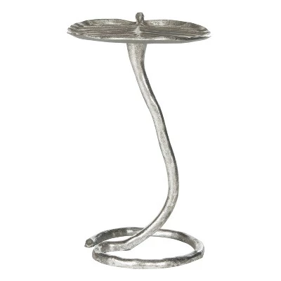 - Silver side table resembles a lilypad