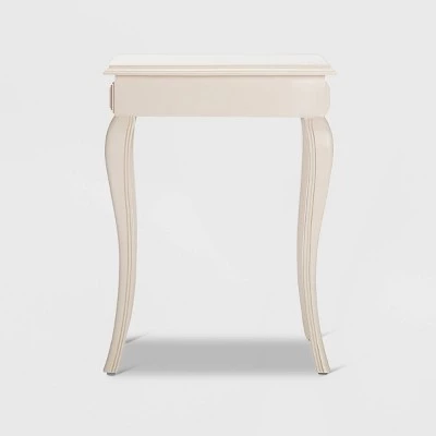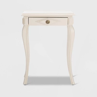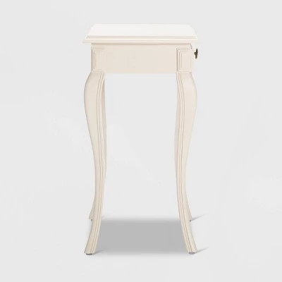 Whether holding books, headphones, or remotes, a simple yet functional bedside table can be difficult to find. This accent table is the storage solution to get the job done. Elegant in its simplicity, a single drawer hides away smaller items, while the sturdy wood top provides a place to set items down for the night. This decorative table also works well as a small accent table in an entryway or hallway, or next to your favorite lazy chair. This white accent table really can do it all.