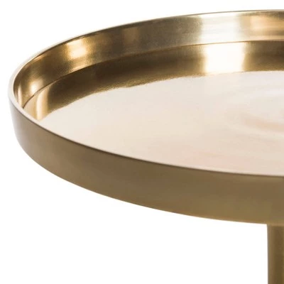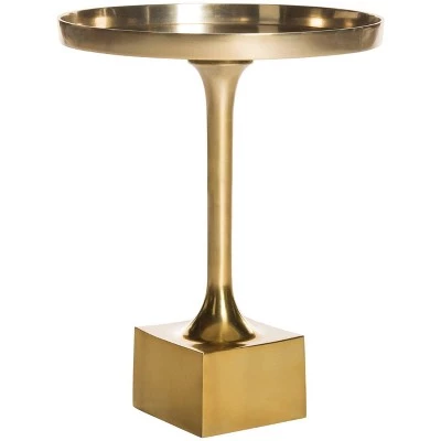 Inspired by the sculpture of Romanian artist Constantin BrΓ’ncuΘi, this round side table is a contemporary masterpiece. Its luxurious antique brass finish illuminates its pairing of clean lines and chic curves. Designers love the tray style top detail. Constructed from antique brass colored aluminum with a powder coating finish, this sturdy piece of furniture is able to support up to eighteen pounds. The Corvus round side table is the perfect choice for Contemporary, Mid-Century, or Modern style dΓ©cor.