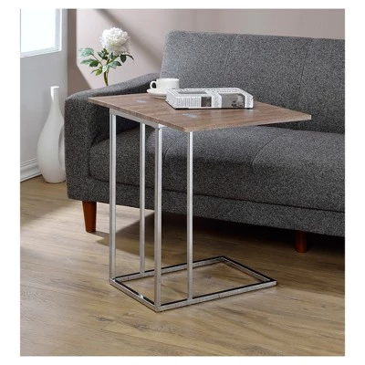 Get the perfect surface to fit your needs, whether you just need to rest a cup of coffee or need a wider work space, with the Oak Chrome End Table from Acme Furniture. This C-shaped end table slides easily under your couch or armchair, keeping your beverage or work space as close as possible. The sleek chrome frame fits in easily with your existing decor, supporting a wood-look tabletop with a butterfly tabletop, with two leafs expanding out to the side to create a wide surface when you need a little more space.