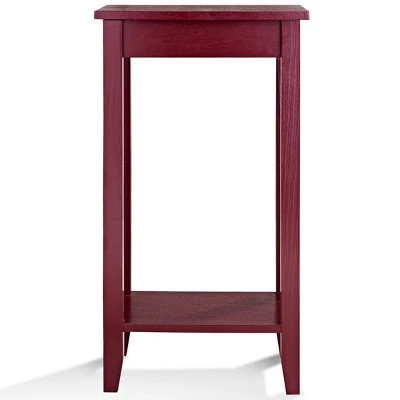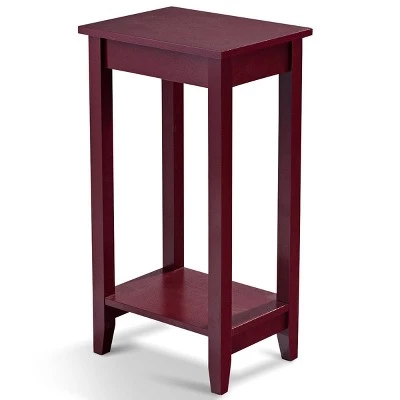 Product Description. Tall, Lean And Lovely! Wood Tall End Table Brings A Unique And Charming Design Element To Any Room. The Size Of The Tabletop Is The Perfect Balance Between Functional And Space-Saving And The Lower Shelf Provides Additional Space For Accent Pieces Or Other Small Items. Made From A Combination Of Solid Wood And Wood Veneer, The End Table Will Not Wobble, Wrap Or Split. Its Above-Average Height And Narrow Legs Make The Solid Wood Tall End Table Above All Others. Specification: Material:Wood. Dimensions:16”x12”x29”LxDxH). Weight:10Lbs. . .