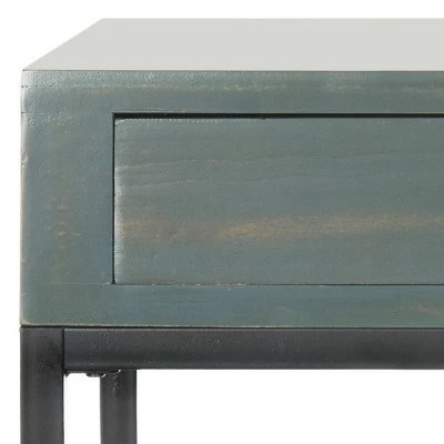 Chic and sophisticated, the contemporary Danforth end table is a versatile addition to the living room or bedroom. Crafted of Elm wood with various colored tops sitting on black Parson Style base and legs, this piece comes with a deep drawer to stow objects you need to keep close at hand. The perfect height for reading lamps, the Danforth end table finishes a room with flair. The Danforth end table is the ideal choice for Contemporary, Modern, Nautical or Shabby style interiors.