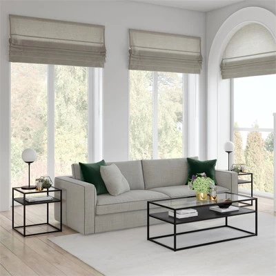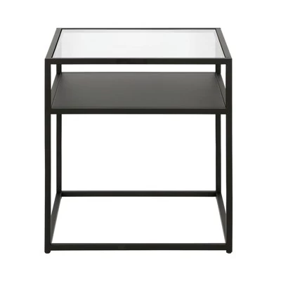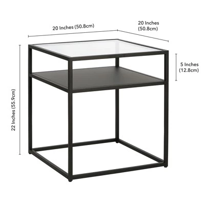 This industrial display box styled side table features a seamless blend of function and design. Easy to assemble and easy to style, the tempered glass top, metal shelf and blackened bronze finish make it the perfect addition to your living room or den ensemble.Features : Tempered glass top.Metal shelf has weight capacity of 20 lbs.Features easy assembly.Weight capacity can support up to 30 LBS.Premium materials have been used in the making of this productSpecifications : Product Weight : 23.3 lbsFrame Material : Metal