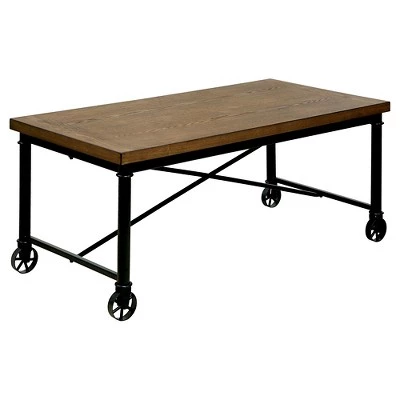 Get the complete look of an industrial-styled home with the HOMES: Inside + Out 3pc Levi X-Crossed Industrial Table Set in Medium Oak. With everything you need for an easy home decor update, this set is essential. Boasting smooth wood panel tabletops, this set is crafted of a durable metal frame. Set atop caster wheel accents with center support beams for extra backing, the HOMES: Inside + Out 3pc Levi X-Crossed Industrial Table Set in Medium Oak is the perfect trio for your family to enjoy.