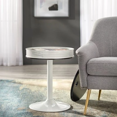Modernize your living space with the Sloane Retro Round Side Table from Buylateral. This unique table features a tabletop that lifts off to reveal available storage space for books, remotes, and needed essentials. The contrasting two-tone finish in black and white is a sure transforming focal point for any living room or family space.