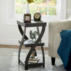 - Metal construction with a brass finish and powder-coated bronze hardware