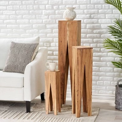Whether your home needs one side table or three to accommodate you and your guests, our nested table has you covered for any occasion. Including three nested tables, this set offers incredible versatility whenever you need some extra table space. When your guests have gone and you need your living room back, you can simply tuck these tables together for easy storage. Featuring a unique hairpin design built from rich acacia wood, this stackable set will provide outstanding durability and style for years to come.
