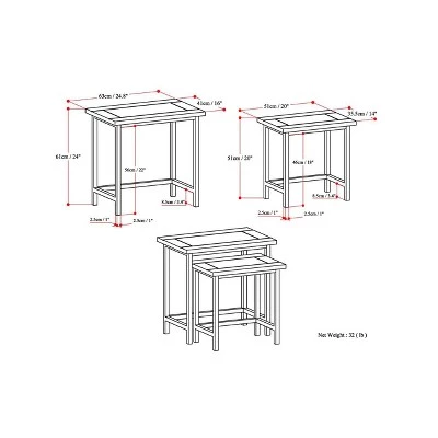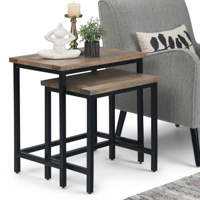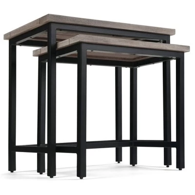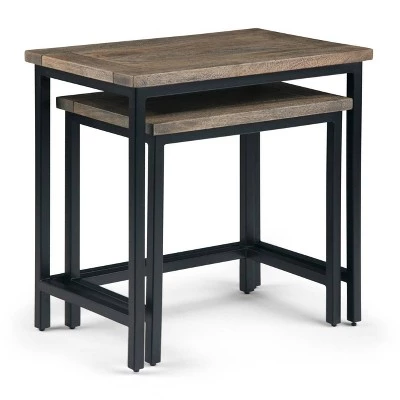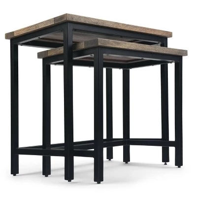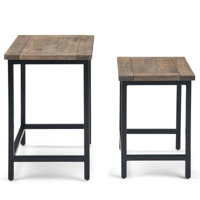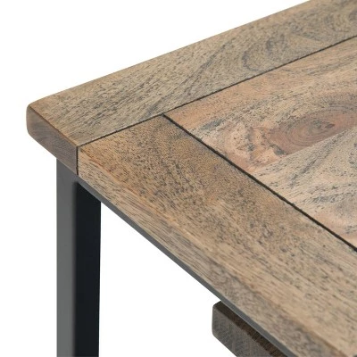 Rhonda Solid Mango Wood and Metal 25 inch Wide Rectangle Industrial 2pc Nesting Side Table, Fully Assembled. Modern Industrial Style. Black Metal Frame and Legs. Handcrafted with care using the finest quality richly grained solid Mango Hardwood & Metal. Small Table: 20″ h x 20.75″ w x 14″ d
