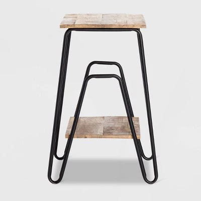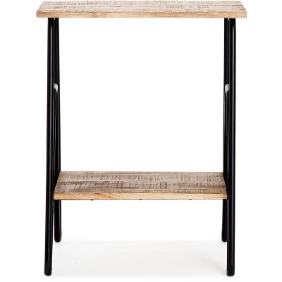 - Tabletop and lower shelf made with solid mango wood
