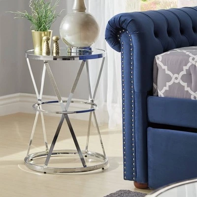 Perfect for the contemporary or modern home, the Estella Mirrored Top Round Entryway Side Table in Chrome from Inspire Q is a unique and glamorous piece to add to your entryway or living space. Crafted using iron tubes, this charming piece is sturdy and will last a long time. Side table is versatile and would work next to your sofa or placed next to your beside. Use the mirrored top to display your home dΓ©cor or give your guests a place to set down their drinks.