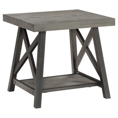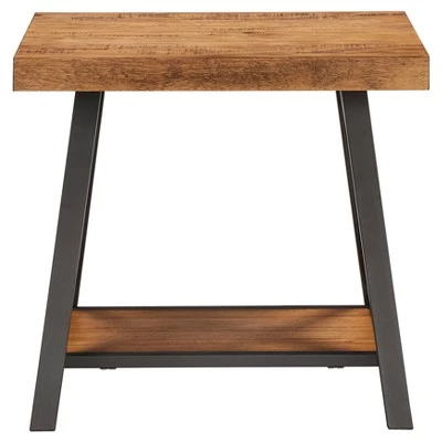 Bring a look of eye-catching contrast to your living space or home office with the Lanshire Rustic Industrial Metal and Wood End Table from Inspire Q. This industrial-style table features two metal X-base sides that contrast with the warm wood-finished tabletop and storage shelf below. Add a lamp on top and a stack of books or magazines on the bottom to complete a cozy reading spot