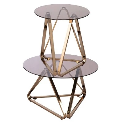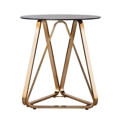 Add contemporary flair to your small space with the Aiden Lane Tainbin Round End Table. A geometric base brings a sleek, modern look to your living area, while the smoked glass tabletop conveniently holds a vase of flowers or the TV remote. Place this chic side table in your entryway to collect keys and wallets when you walk in the door, or tuck beside your family room sofa to keep your drink close at hand. Bring bold style to your sitting room or open concept space with this round accent table.
