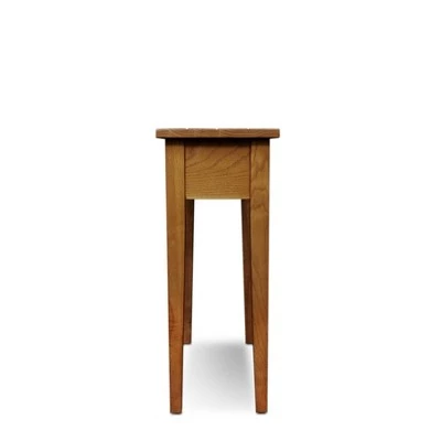 The relaxed simplicity of the cottage lifestyle is captured in this narrow side table with blackened bin pull metal ware. Any chair becomes a better place to sit with this tables planked solid wood top within easy reach. Finished in a warm Candleglow, this end table will add a natural look next to a sofa or recliners.