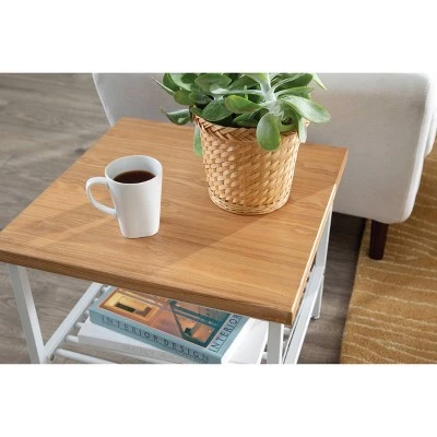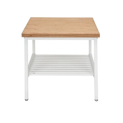The 161 Collection blends mid century modern and industrial modern styles with current design trends to create timeless pieces that will seamlessly complement any decor. The OFM 161 Collection Industrial Modern Wood Top/Metal Frame Side Table with Metal Shelf provides industrial modern styling with multi-application functionality perfect for living rooms, bedrooms, recreational spaces, lobbies, and reception areas. This end table can double as a nightstand with its metal run shelf that provides a convenient space to store miscellaneous items. Assembly is quick and easy and the materials make cleaning simple. The accent table features adjustable leveling floor glides to help account for uneven flooring. The end table measures 19.7″ D x 19.7″ W x 17.7″ H holds up to 200 lb of weight, has a full BIFMA rating, and is covered by our 5 Year Limited Lifetime Warranty.