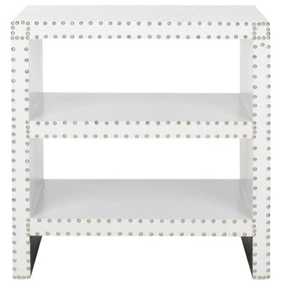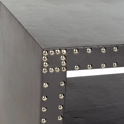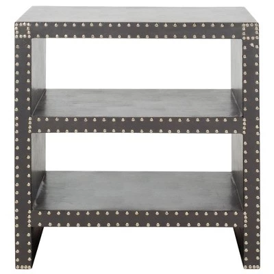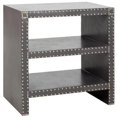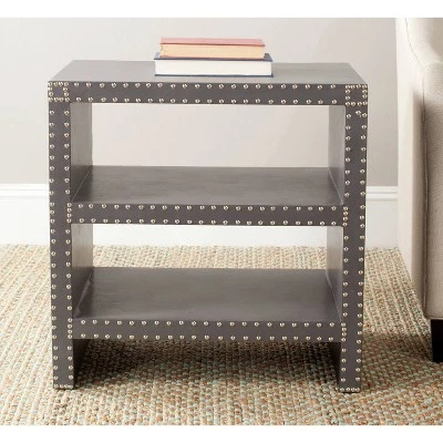 Three times the charm. The gray Lacey Side Table brings the functionality of three stylish shelves to the beauty of the sophisticated iron nail head detail on this traditional accent piece. Strikingly simple, this hardworking piece maximizes storage with two shelves to store and organize your belongings. Constructed from MDF wood and silver colored iron, this sturdy side table is able to support up to twenty pounds. The Lacey side table is the perfect addition for Contemporary, Glam, Modern or Transitional style interiors.