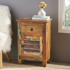 Complete your home with a one-of-kind accessory that brings a stunning hand-crafted look. Featuring recycled wood and artfully distressed paint, the color and finish of this Christopher Knight Home Laveer Wooden Side Table will vary by the piece, making this accessory the perfect unique addition to your home. This table brings a boho vibe to your space with a simple drawer and beautifully slatted cabinet door that also serves as convenient storage to organize any clutter. With this delightful Christopher Knight Home Laveer Wooden Side Table, your interior space will instantly transform with a touch of vintage charm and playful colors.
