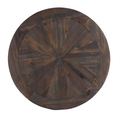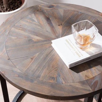 Construct a rustic design with the Aiden Lane Lymedon Round Reclaimed Wood End Table. An industrial metal frame raises the stakes, while a round tabletop keeps your style down to earth with recycled wood. Stack your favorite books on the sunburst patterned top, or go for a minimalist look with a simple vase or potted succulent. In your living room or open concept space, this two tone accent table brings out your industrial side.