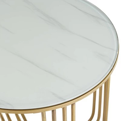 - Bronze finish over metal construction. Marbleized tempered glass.