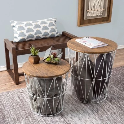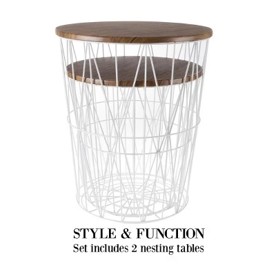 Place these two Hastings Home Wire and Wood Nesting Tables on either side of your sofa. The metal wire bases can be filled with blankets or other items, or you can leave them empty for a clean look. The white finish on the MDF tabletops complements most any interior decor.