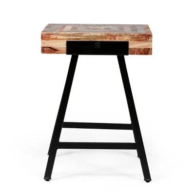 Set your coffee cup next to your sofa or display your favorite photos with an accessory of charming style. Our side table is the perfect companion to any living space with its stunning modern industrial design and purposely distressed wooden finish. With a gorgeous mango wood tabletop and stunning A-frame legs, this side table brings a refined touch to any sofa or chair. Whether you’re using this in your living room or bedroom, this sleek accessory allows you comfortable table space whenever you need it.