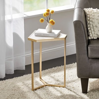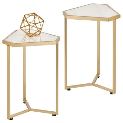 Form and function come together in the mDesign Triangle Metal & Marble In-Lay Side/End Table. This accent piece boasts a striking minimalistic modern design that complements any decor. Accent your living space with this compact yet stylish piece and enjoy the versatility and style it offers your home. Ideal for small spaces, it tucks neatly into a corner or next to a chair and provides an eye-catching display area. Made of strong durable steel, this sturdy table will be sure to please. mDesign – Solutions for Home. Solutions for Life.