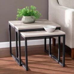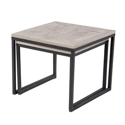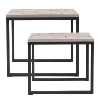 Blend functional and style with the Aiden Lane Thorpe Reclaimed Wood Nesting End Tables. Tabletops crafted from repurposed wood hold everything from potted plants to books to photos, while the nesting design makes the most of your small space. Place these accent tables side-by-side for extra space while you entertain guests, or tuck the smaller table underneath the larger for convenient display space in a compact footprint. Your home design works for you when you bring home this nesting table set.