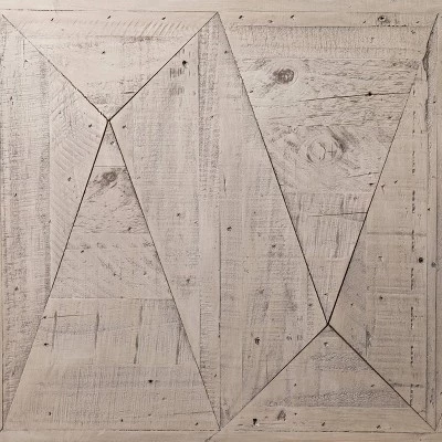 - Sunbleached gray reclaimed wood and black gunmetal finish