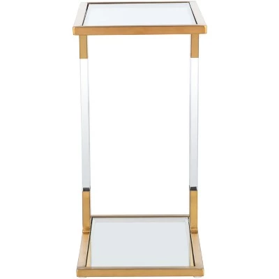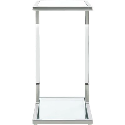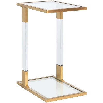 Overflowing with sophistication, this Tammi C-Table is a designer must-have for glamorous contemporary interiors. Crystal clear acrylic legs create an illusionary display that pairs perfectly with TammiΓs metallic borders and smooth glass surfaces, and the artistic asymmetry makes it elegantly eye-catching. Care Instructions: