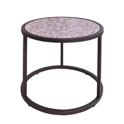 This set of occasional tables is the coastal living interior decor you need for your harbor or bay home. The stone-like tabletop design evokes the natural colors of the beach with sandy beige and aqua blue. Not only are they nesting tables, but the sturdy steel frames are also finished in a gunmetal powder coat that is dent and scratch-resistant.