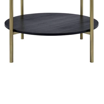 The Picket House Furnishings Blaine 3pc Occasional Table Set is living room goals! This three piece set includes a coffee table and two end tables. The table tops are tempered glass, ensuring stability and also a touch of chic. The table legs are powder coated in a gold metallic, which pairs beautifully with the black shelf in the middle.
