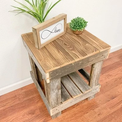 Why settle on a single style of decor when the del Hutson Designs Reclaimed Wood Slim End Table lets you celebrate both modern and rustic looks at once?This living room accent table has a minimalist, country look made from 100-percent reclaimed wood. Each plank features an authentic wood grain pattern, color variation, and knots that emphasize the wood’s unique look and natural feel. This barn wood side table arrives fully assembled, so you can display your pictures and decor as quickly as possible. The simple, charming craftsman is durable and free of pretentious ornate frills: just good wood, practically joined. This decorative accent looks stunning with your shabby-chic sofa or eclectic boho-upholstered armchair. With a versatile finish and sturdy construction, it’s easy to find a happy home for this furniture in your living room, bedroom, or sitting room. Measuring 19.5 inches long, 19 inches wide, and 22.75 inches long, this rustic surface is a compact size, perfect for entertaining in small spaces. Reinvent any space in your home and rest your drinks and appetizers on the del Hutson Designs Reclaimed Wood Slim End Table at your next party.