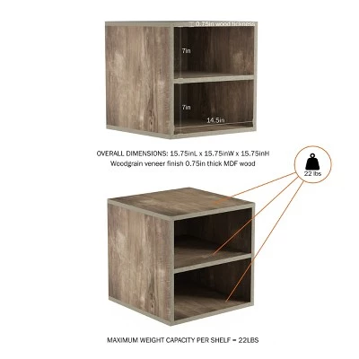 - PRODUCT DETAILS- Materials: MDF Wood and Wood Grain Veneer, Dimensions: 15.75-in L x 15.75-in W x 15.75-in H, Weight Capacity: 22 Lbs, Per Shelf, Color: Wood Grain Gray, Includes Assembly Hardware