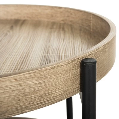 This contemporary portable side table is a moveable design feast. Chic and sturdy, it features two tray style shelves for ample storage and maximum versatility. Its stylish while being very convenient. Its neutral light gray palette allows it to seamlessly blend into any modern interior. Crafted from MDF wood and black colored iron, this side table is able to support up to thirty pounds. The Javan end table is the perfect addition for Contemporary, Mid-Century, Modern or Rustic style interiors.