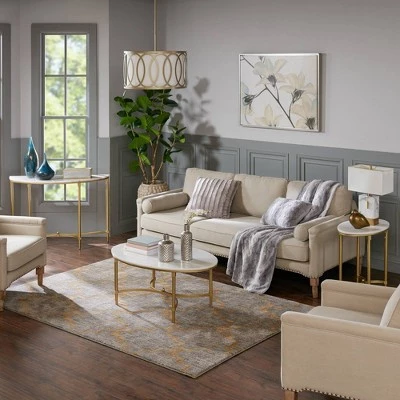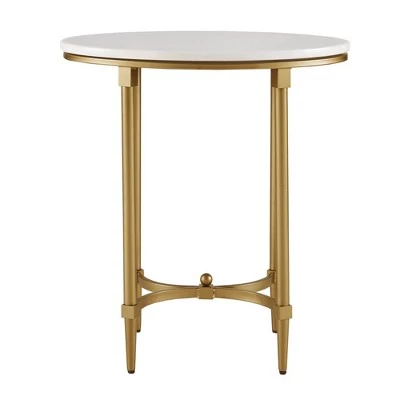 The Bordeaux End Table transforms your living room with its sophisticated traditional style. Flaunting a high-class look, this round end table showcases a white marble table top with beautifully coordinating gold metal legs. Slip this elegant end table into your living room or home office to bring a glamorous allure to your decor. Assembly is required.