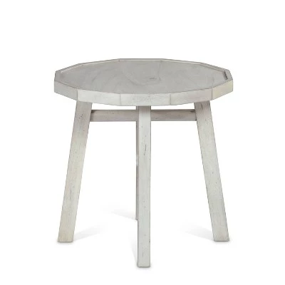 The hand-crafted Paisley End Table presents vintage styling in a fresh new way with an updated alabaster finish. The tray tabletop adds a classic look while also preventing items from rolling off the top. Timber-beam legs feature a cross stretcher design that adds beauty and strength to the piece. Your purchase includes one end table.